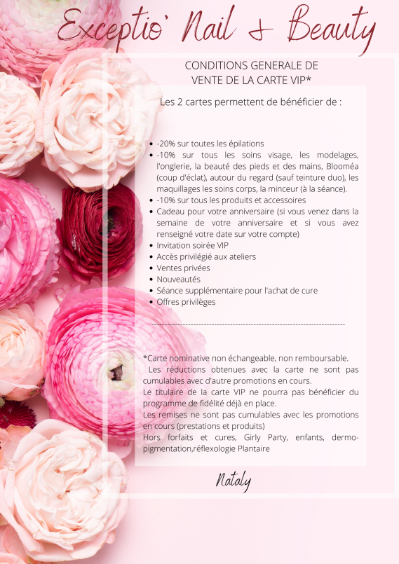 Les remises ne sont pas cumulables avec les promotions en cours (prestations et produits)
